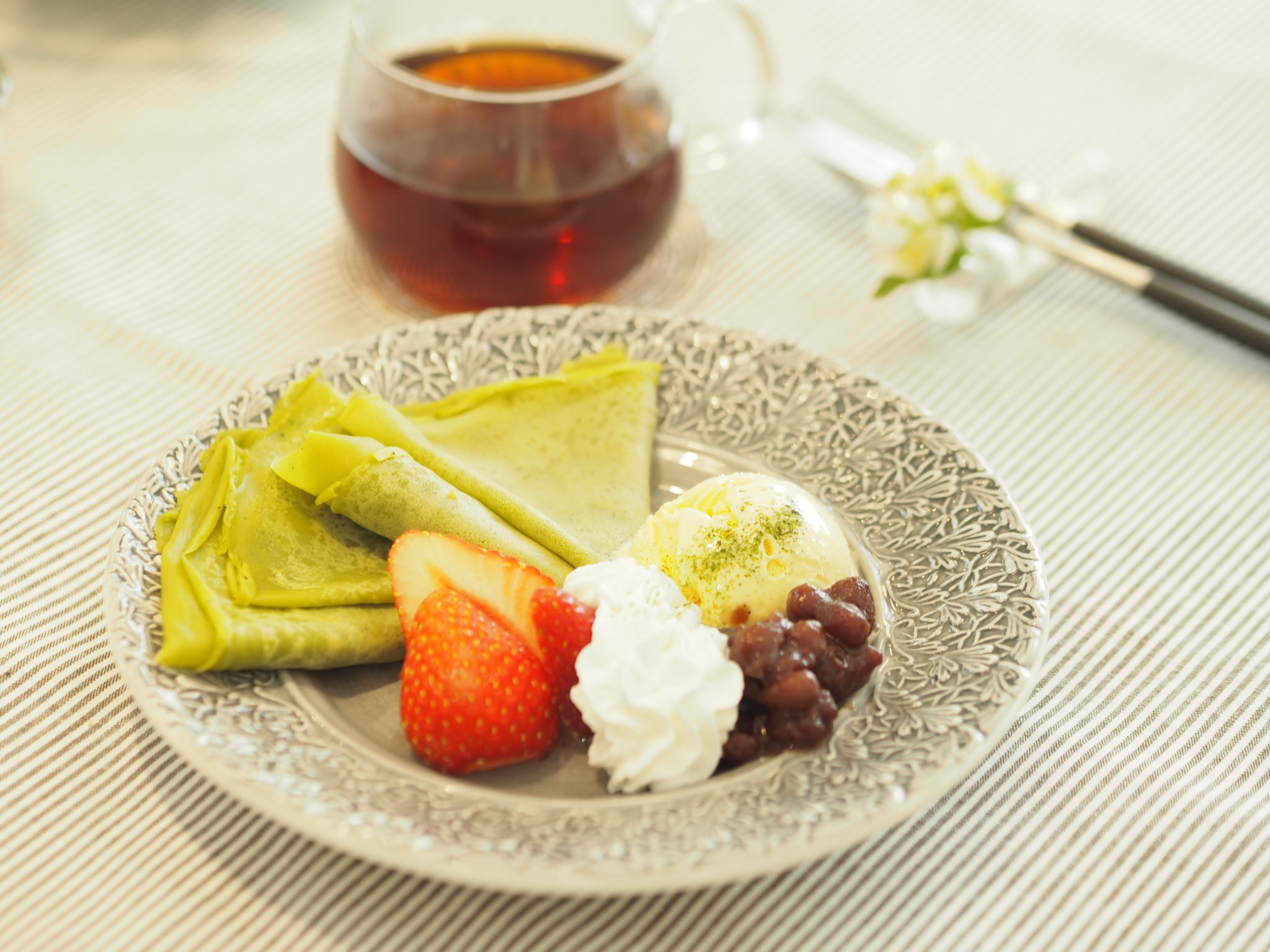 今月のレッスンのデザートは抹茶クレーププレートです。